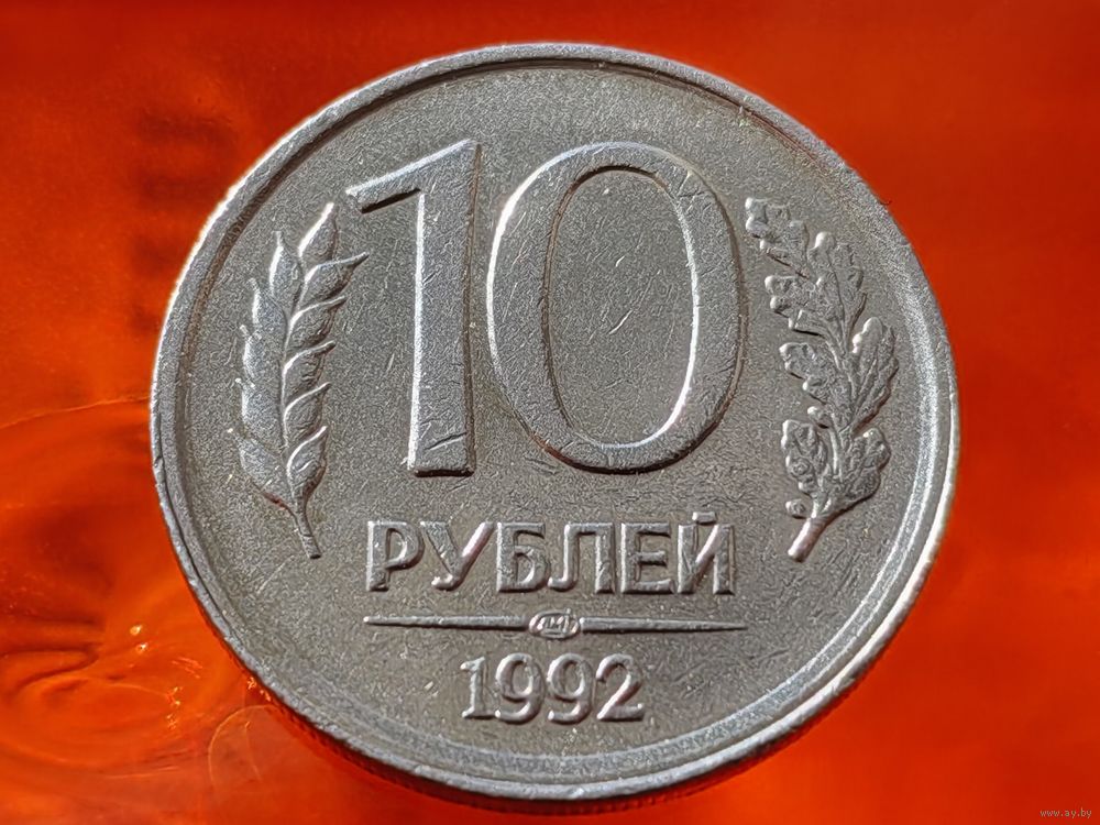 Россия (РФ). 10 рублей 1992, ЛМД, немагнетик. Брак, разворот (поворот) + смещение. Торг.