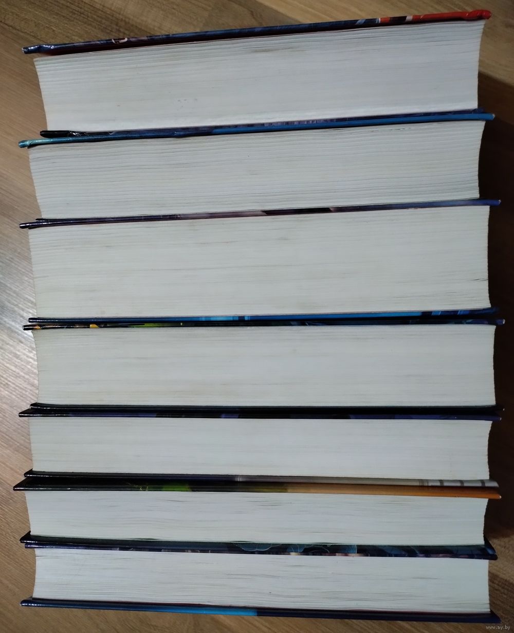 Книги напечатаны на отличной бумаге, имеют твердый переплет, и если их поставить в правильном порядке, на полке появится изображение Хогвартса.