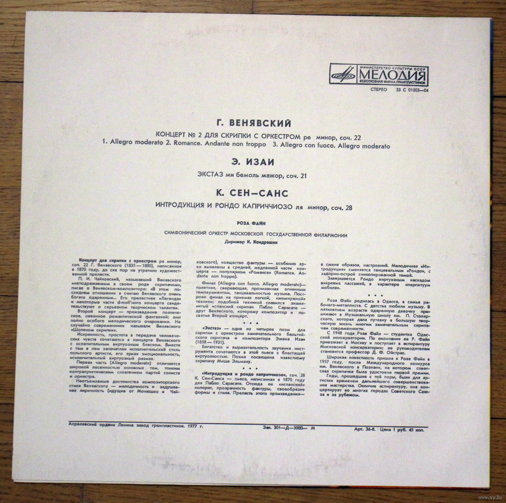Роза Файн – Концерт № 2 Для Скрипки С Оркестром / Экстаз / Интродукция И Рондо-Каприччиозо