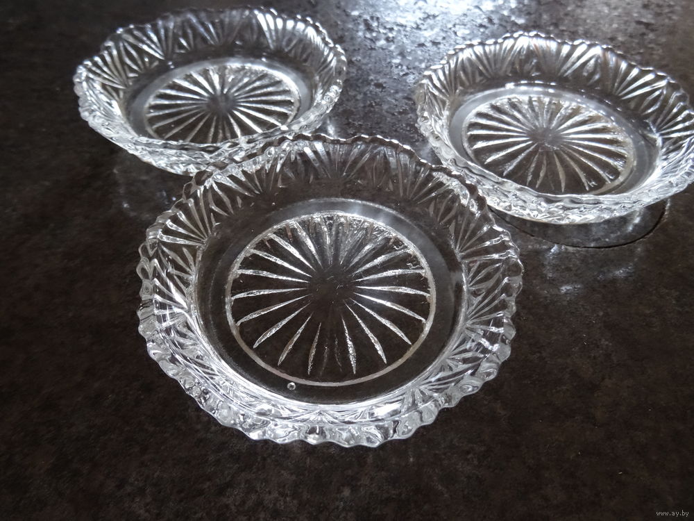 Розетка для варенья, икорница,узор "солнечные лучи", фестончатый край, винтаж СССР, диаметр 8,5 см, высота 2 см