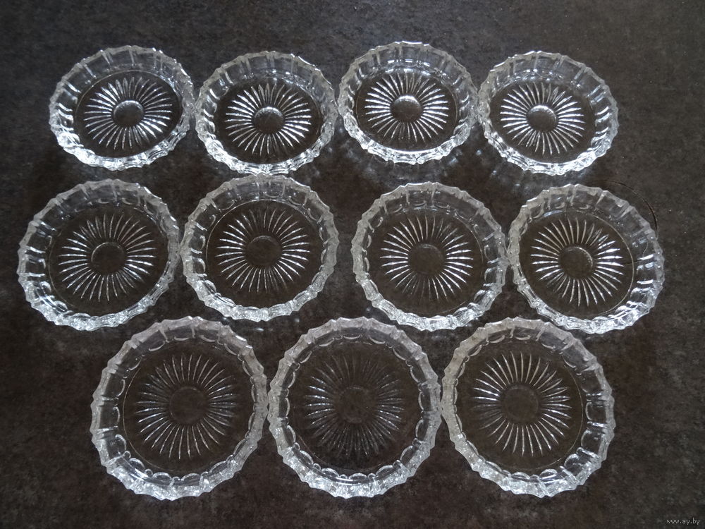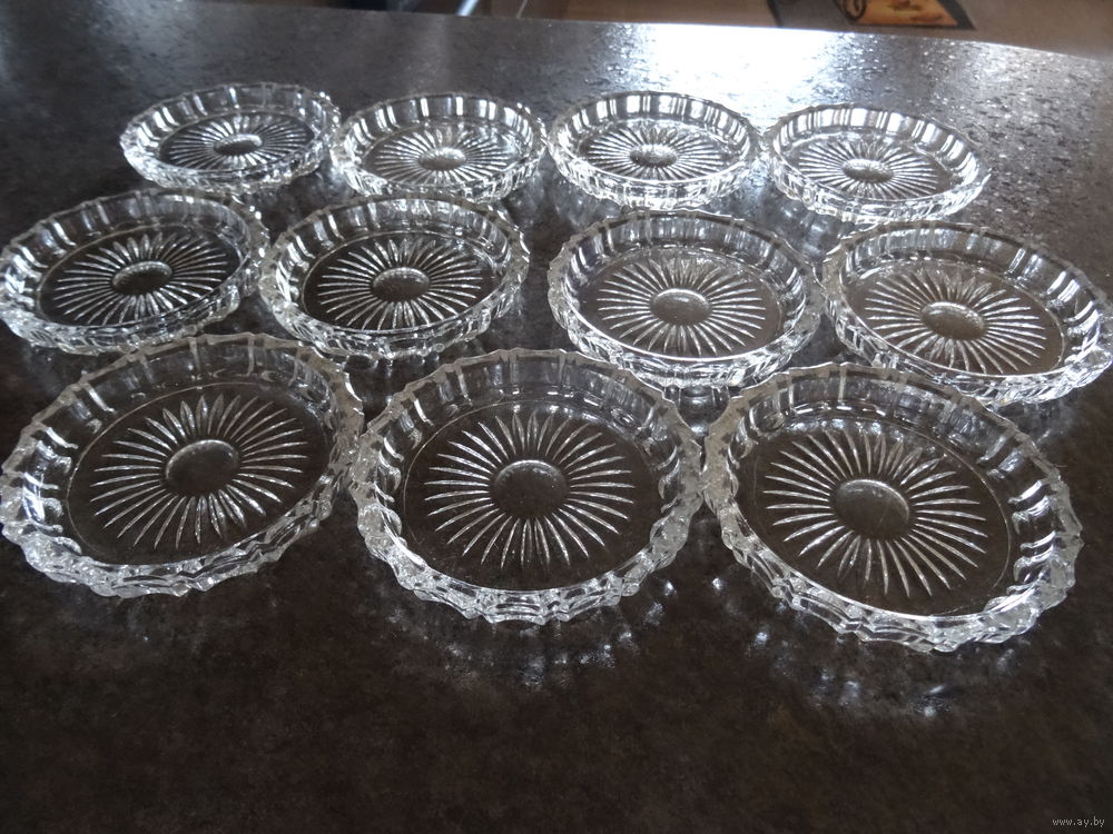 Розетка для варенья, икорница,узор "солнечные лучи", хрусталь, винтаж СССР, диаметр 9,5 см, высота1 см