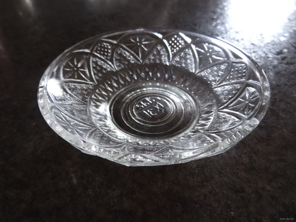 Розетка для варенья стекло, винтаж СССР, диаметр 10 см, высота 3 см, клеймо ДХЗ (Дятьковский хрустальный з-з) до 1963 г.