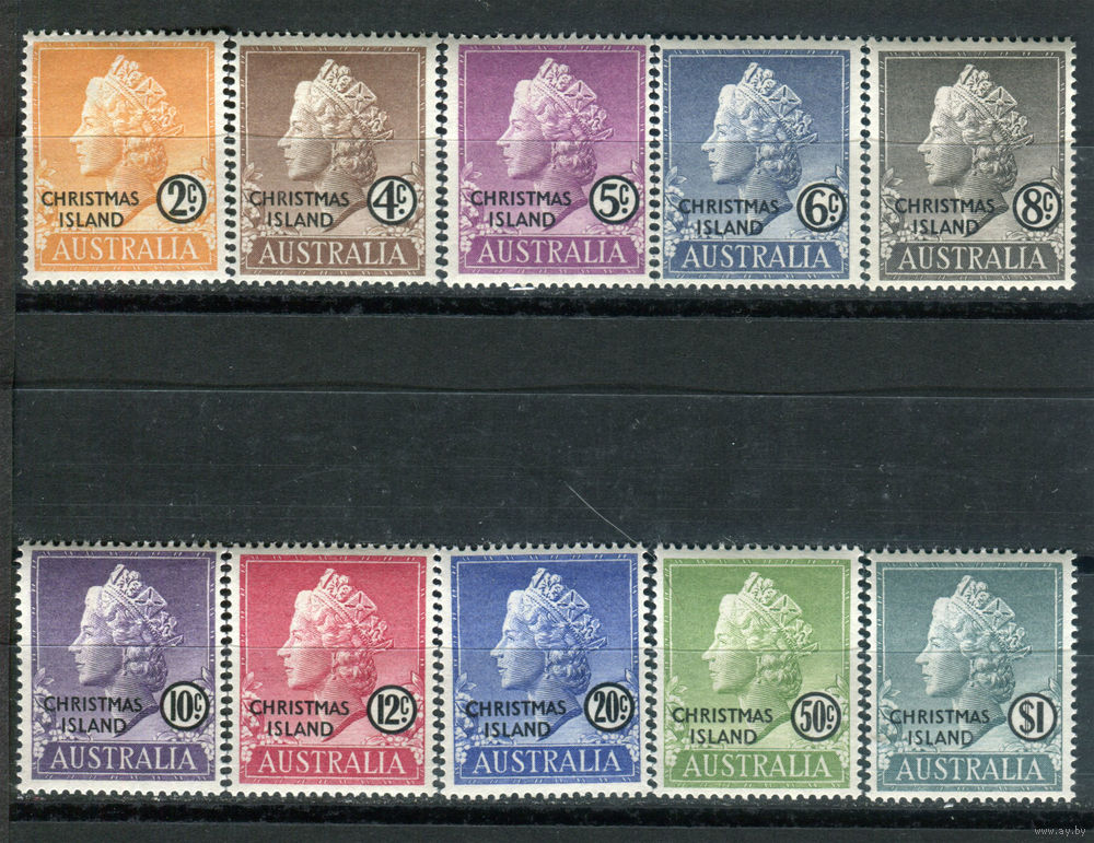![Рождественские острова (о-в Рождества) - 1958г. - королева Елизавета II - 10 марок - полная серия, MNH [Mi 1-10]. #4-B6-Z-1-1](https://s2-lot.aystatic.by/550x510/372/309/5040/5040309372_1.jpg)