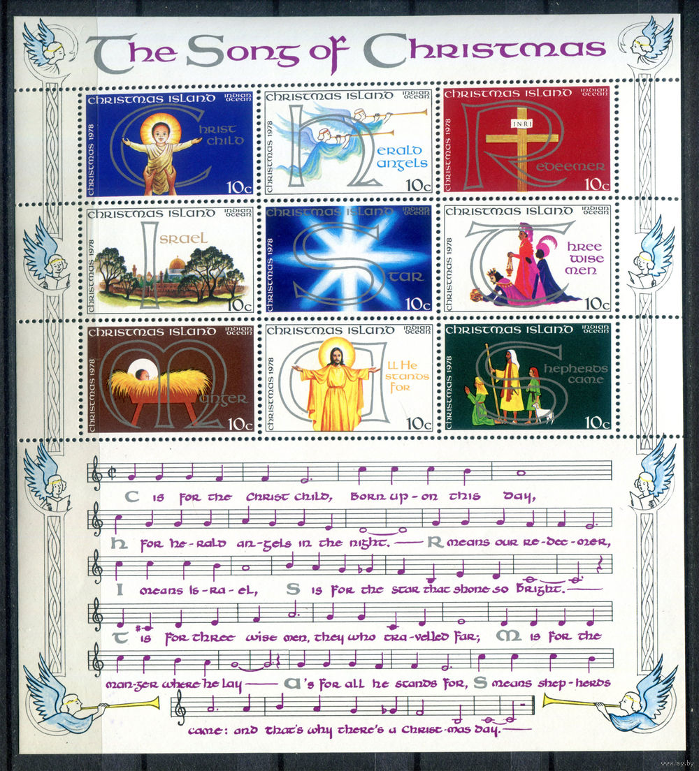 ![Рождественские острова (о-в Рождества) - 1978г. - Рождество - 1 малый лист - полная серия, MNH, маленькое повреждение лицевой стороны, слева скраю [Mi 101-109]. #4-B6-Z-2-18](https://s2-lot.aystatic.by/550x510/742/620/5040/5040620742_0.jpg)