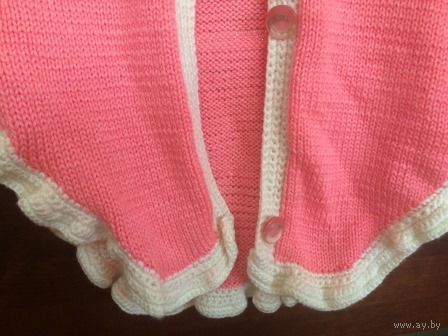 Розовое пончо, вязка на 1-3 года. Очень классное и игривое. Хорошее состояние, с капюшоном. Длина 38 см. Отличное состояние.