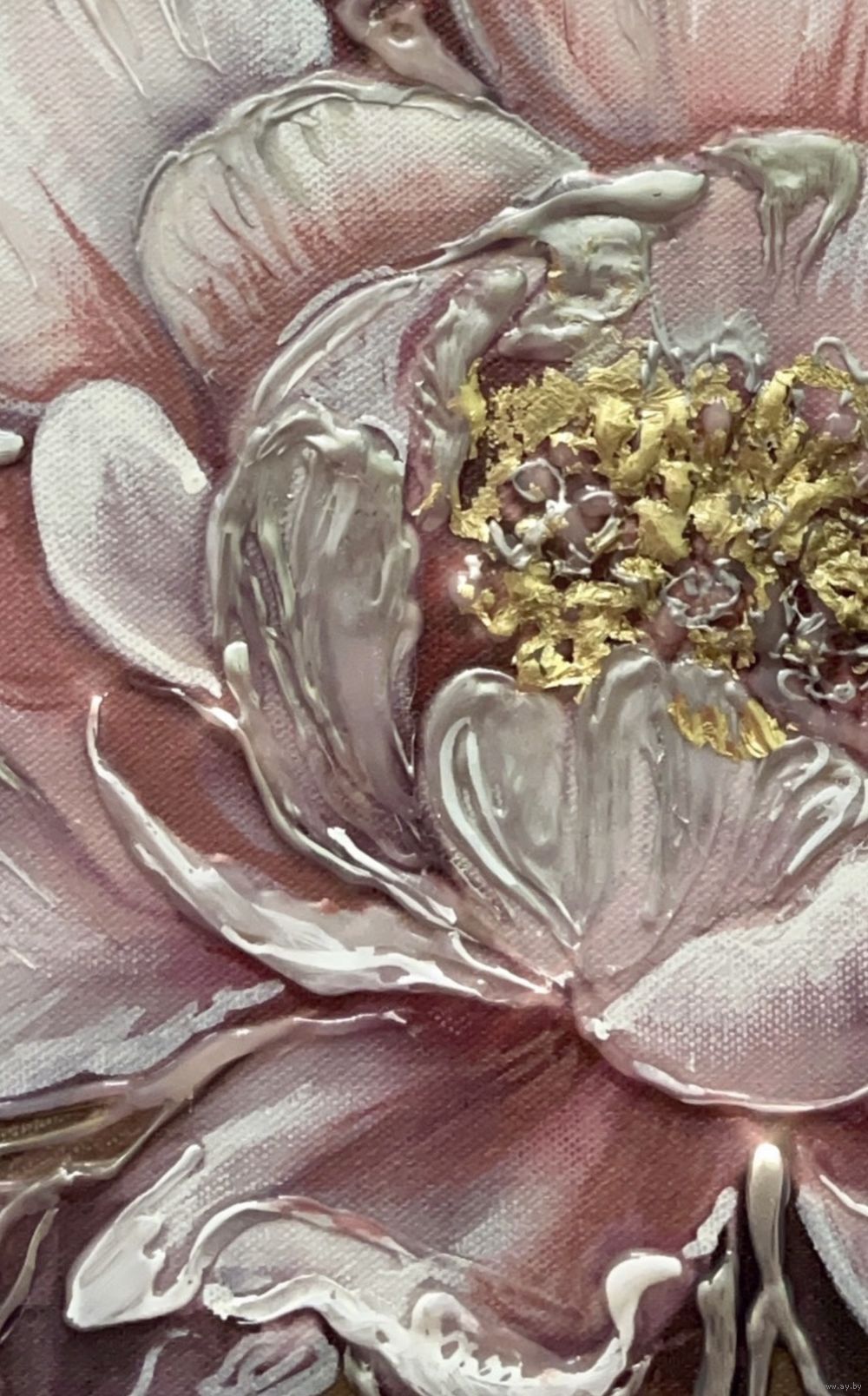 Работа выполнена вручную на холсте с использованием акриловых красок, обьемных контуров,, страз Swarovski.