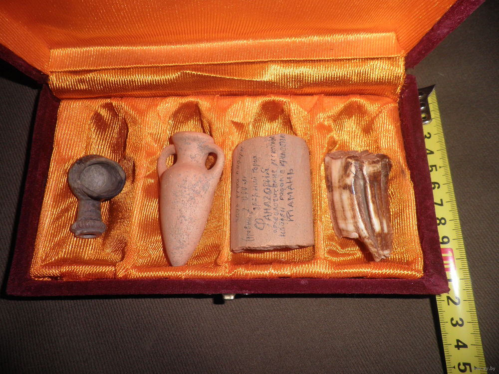 Возраст указан по надписям на предметах и устному заключению экспертов Минского Национального Художественного музея.Письменного заключения нет.