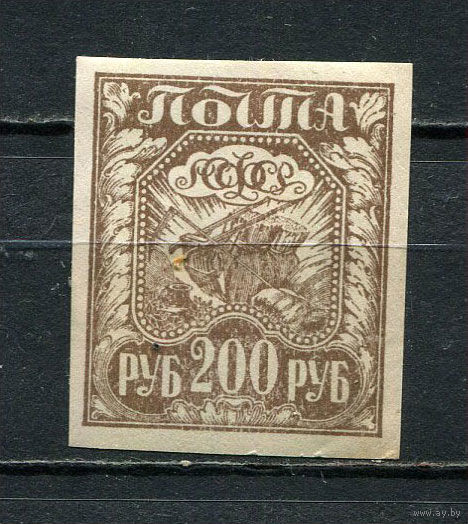 РСФСР - 1921 - Коса, плуг, снопы 200руб - [Mi.157xA] - 1 марка. MH. (Лот 3HV)-TG3P19