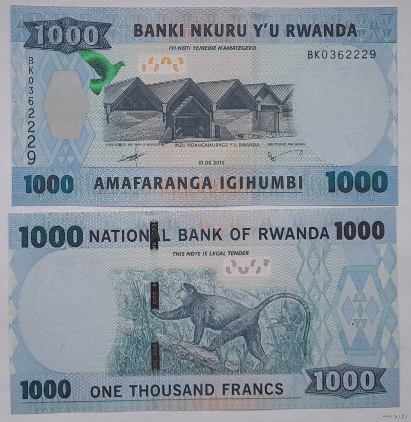 Руанда 1000 франков 2015 года UNC