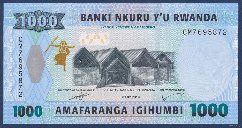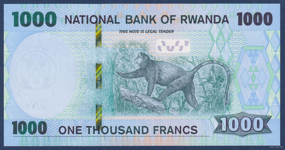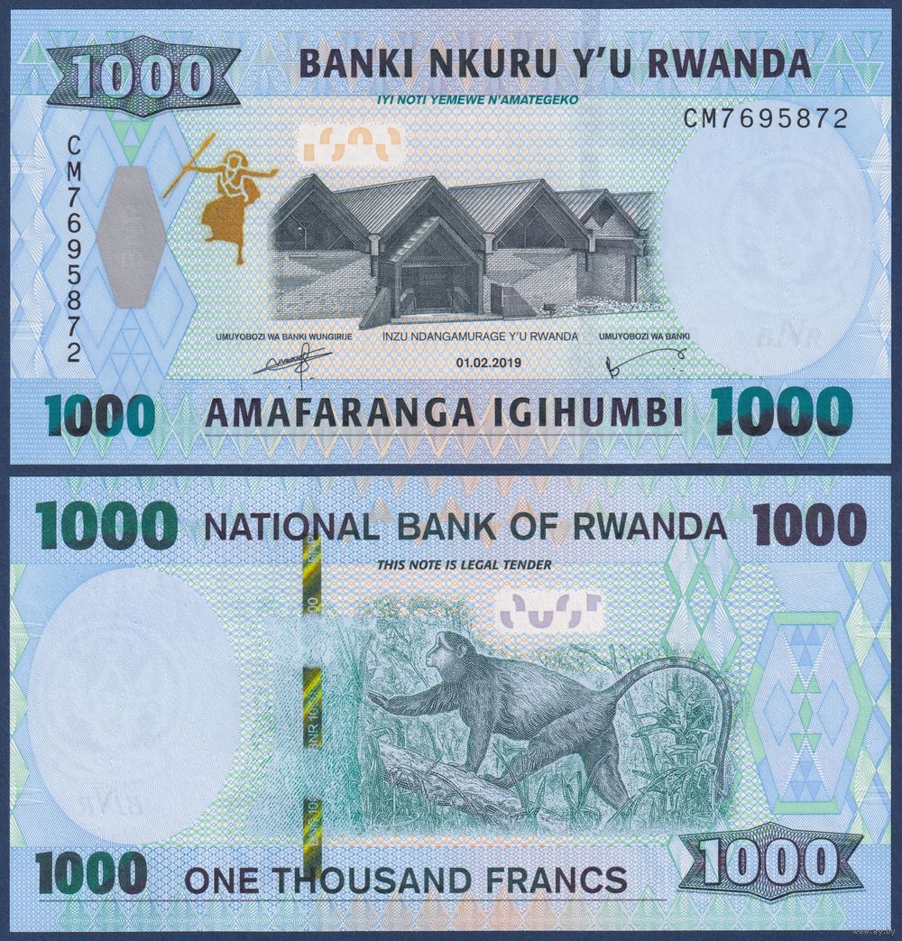 Руанда, 1000 франков 2019 г., P-W43 (CM, национальный музей в Бутаре, золотая обезьяна), UNC