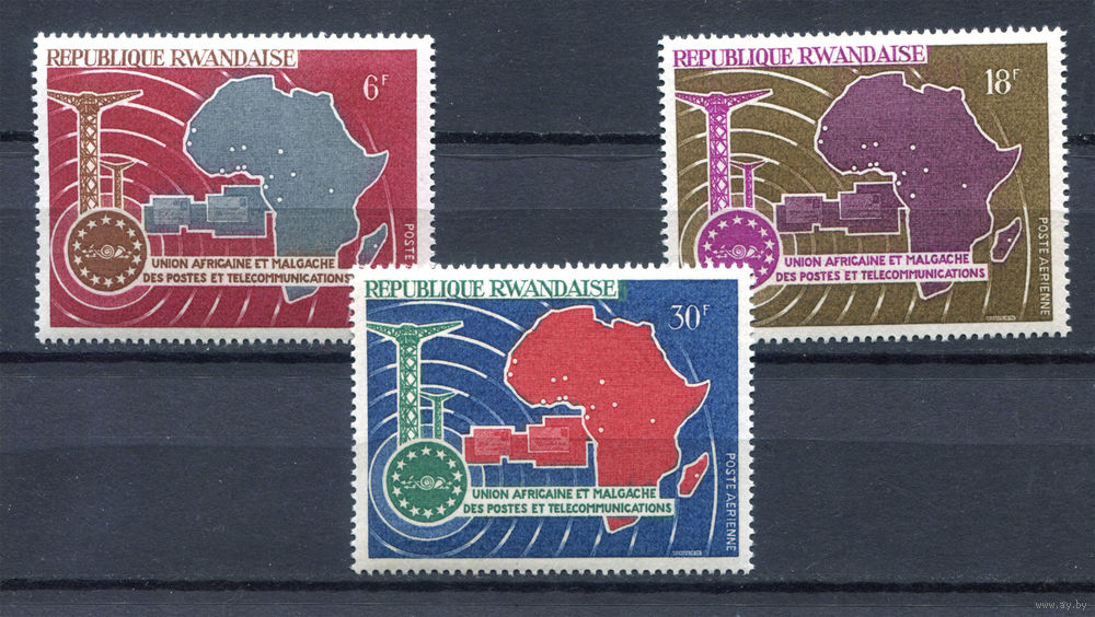 Руанда - 1967г. - Африкано-Малагасийский почтовый союз - полная серия, MNH [Mi 240-242] - 3 марки