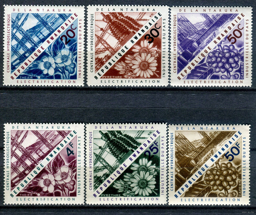 Руанда - 1967г. - ГЭС и флора - полная серия, MNH [Mi 209-214] - 6 марок