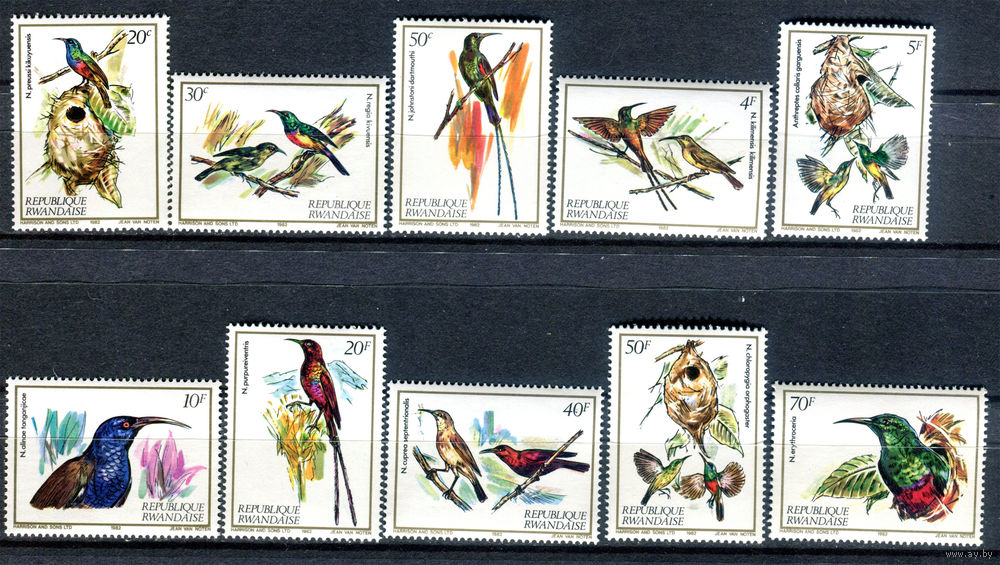 Руанда - 1983г. - Птицы - 10 марок - полная серия, MNH [Mi 1214-1223]. #O-Se-Z-1-2