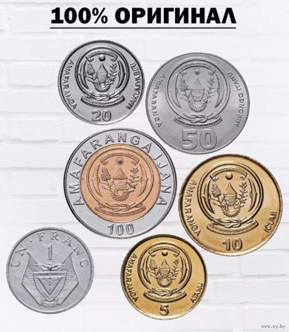 Руанда набор монет 1, 5, 10, 20, 50, 100 франков, UNC. Герб и растения Руанды. Сторгуй за свою цену, предложи обмен! Y320