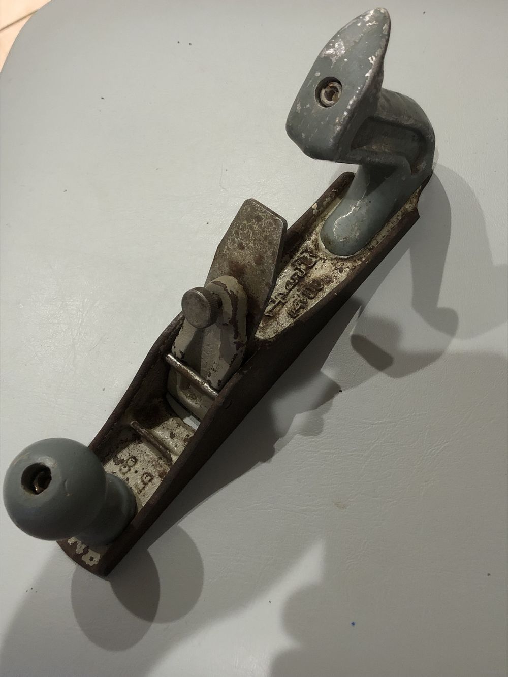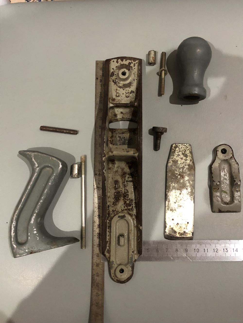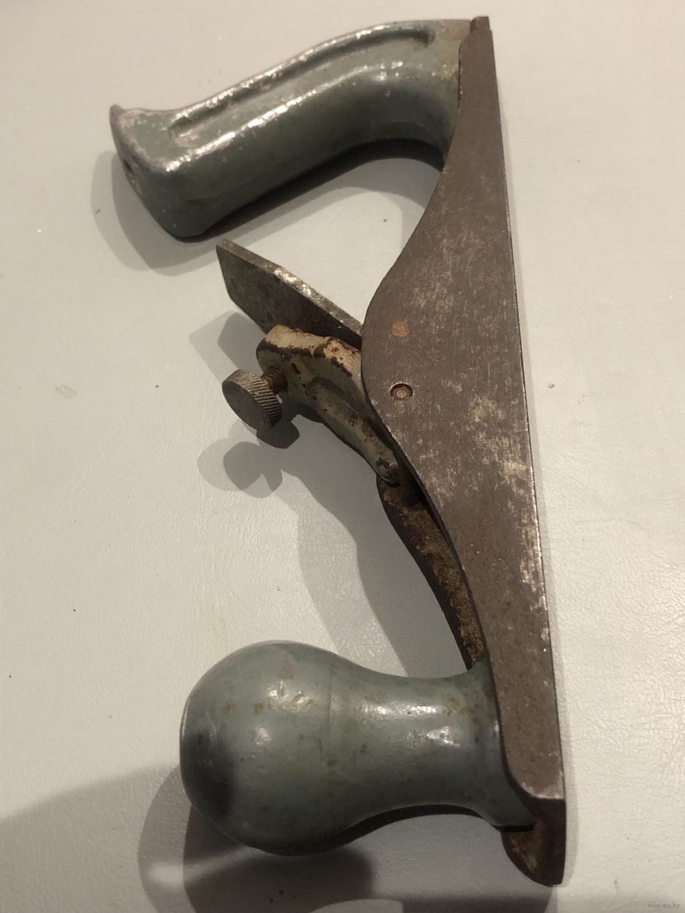 Редкий рубанок с литой тяжелой чугунной фрезерованной станиной: 25х4 см. Вес рубаночка 1 кг.