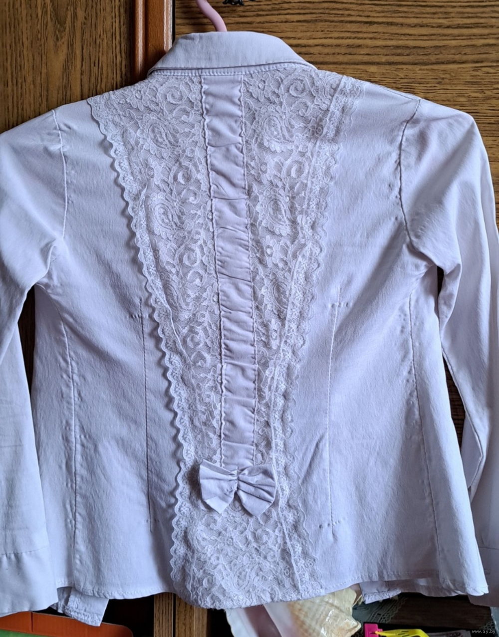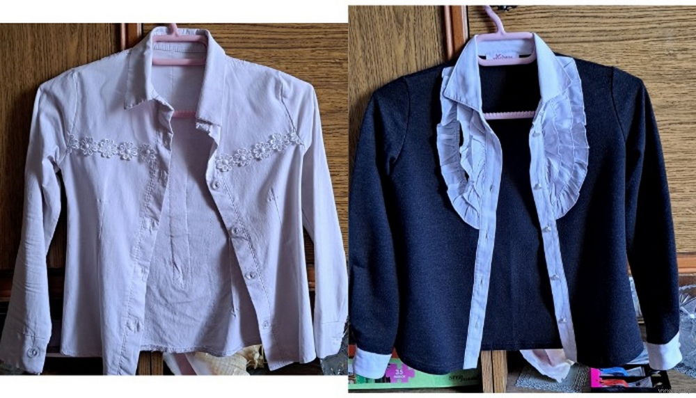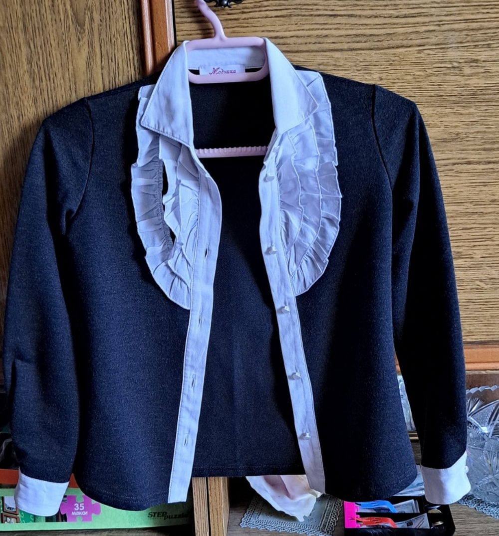 -Рубашка белая на девочку 5-6лет, б.у, в хорошем состоянии, ткань стрейч, длина рубашки-42см, рукава-41,5см, полуобхват под мышками-30см.