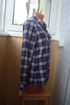 Рубашка актуальной клетчатой расцветки. В тон клетки, красивого серого цвета планка для кнопок, воротник изнутри, манжеты изнутри и петелька сзади под кокеткой на спинке.