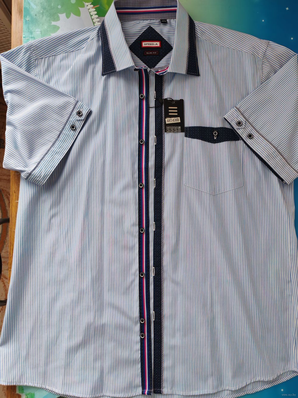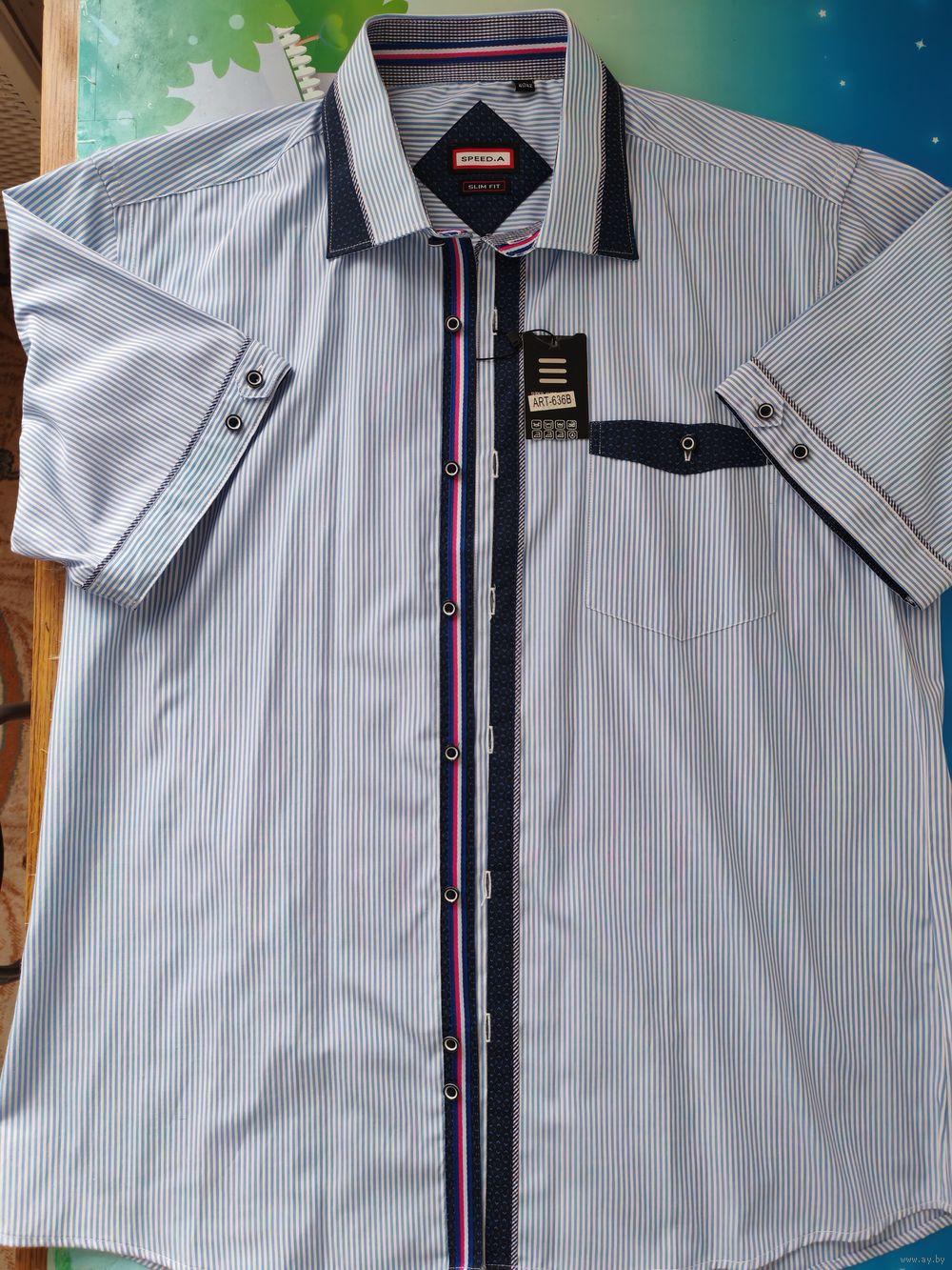 Рубашка мужская с коротким рукавом. Приталенная.