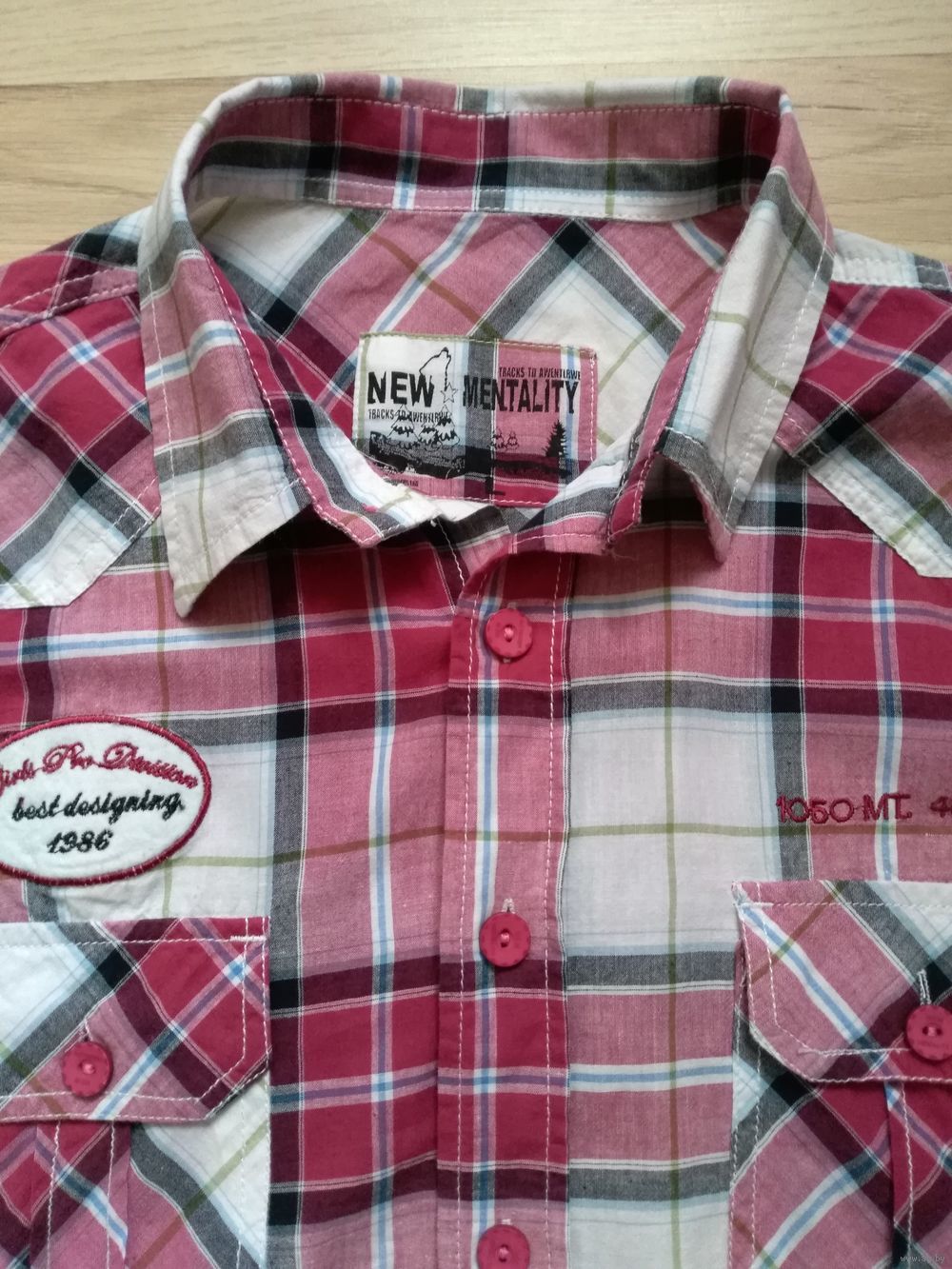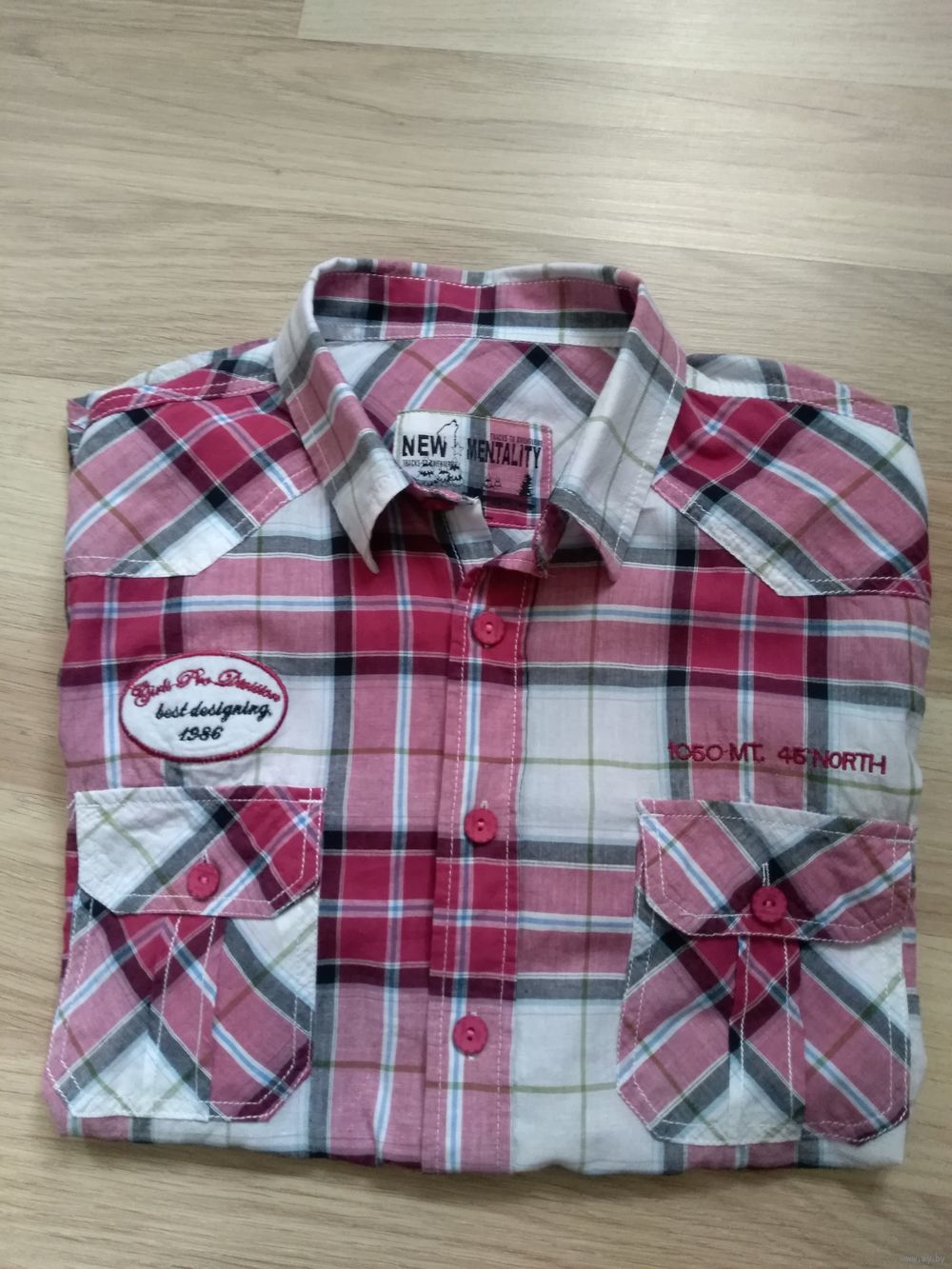 Мужская рубашка с коротким рукавом в отличном состоянии, размер48(M ) приталенная..