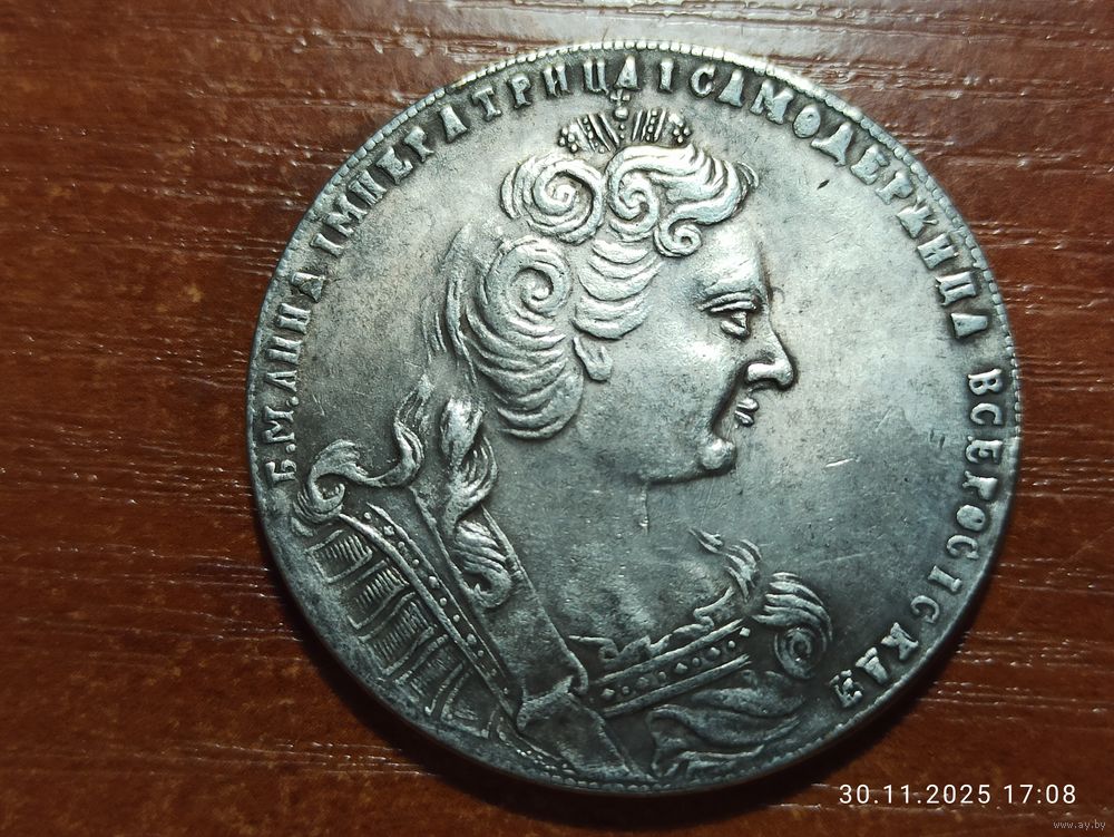 Рубль 1730 КОПИЯ монеты Анны Иоанновны с рубля