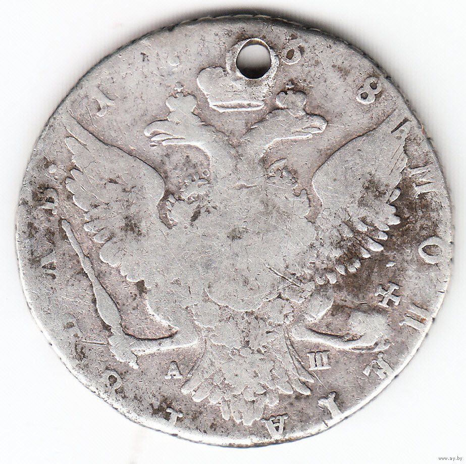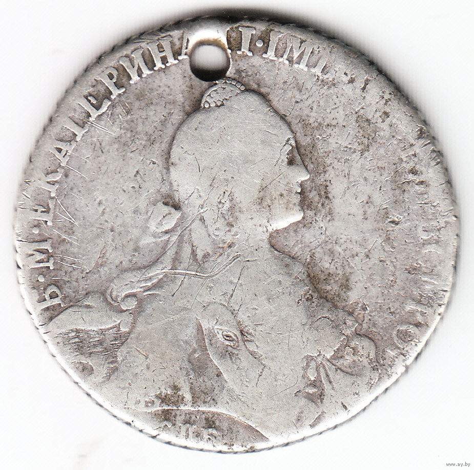 Рубль 1768г спб-аш,дырка