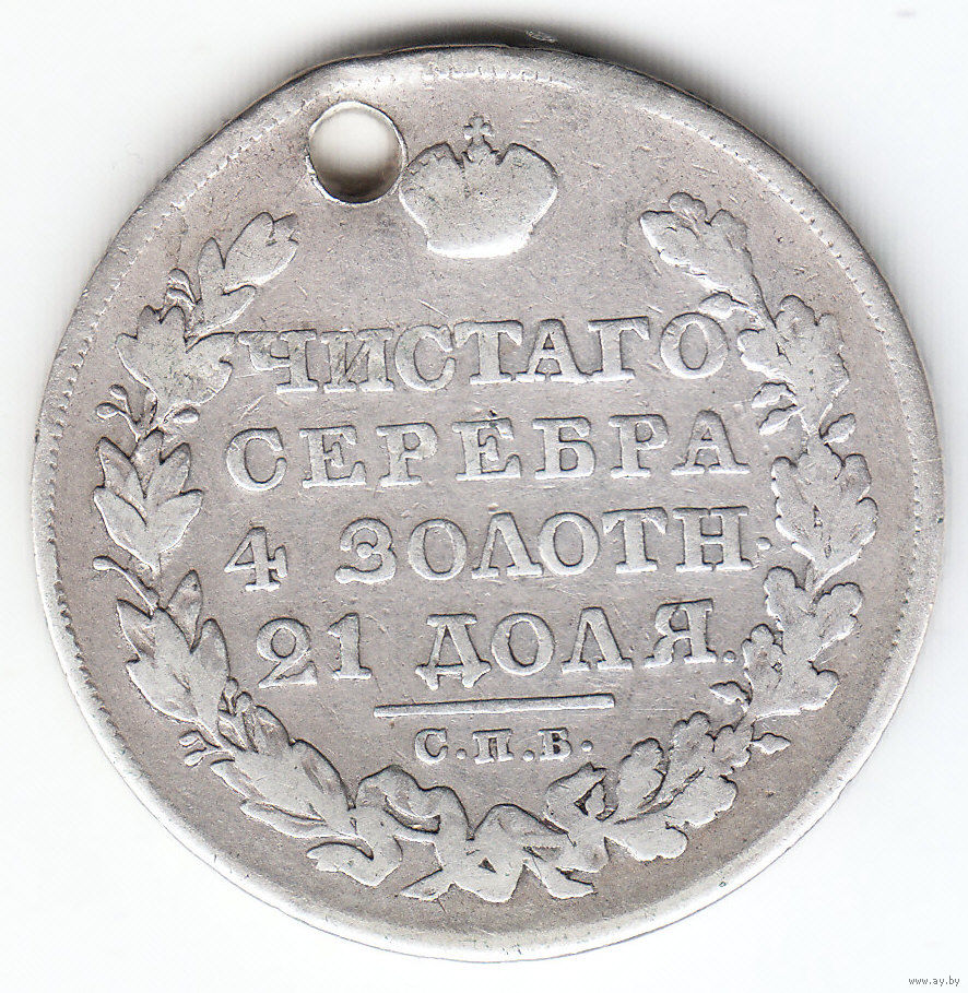 Рубль 1825г нг, дырка