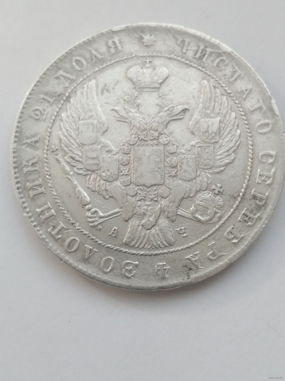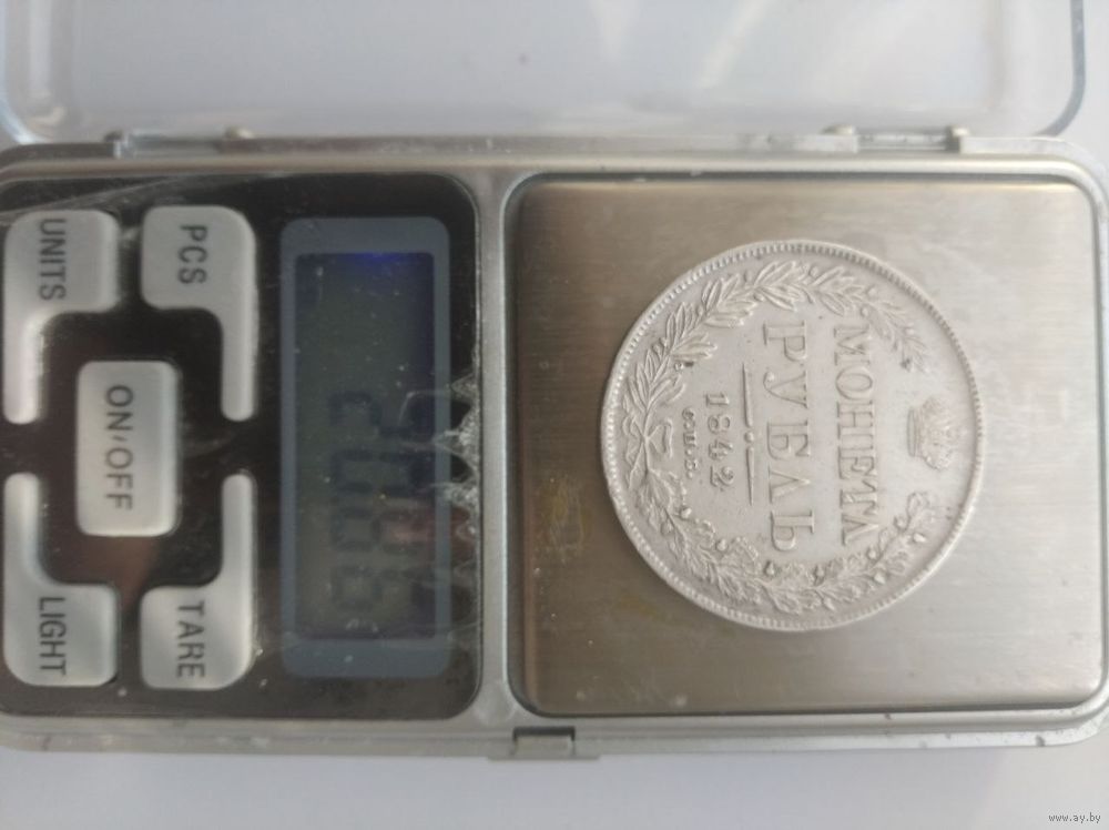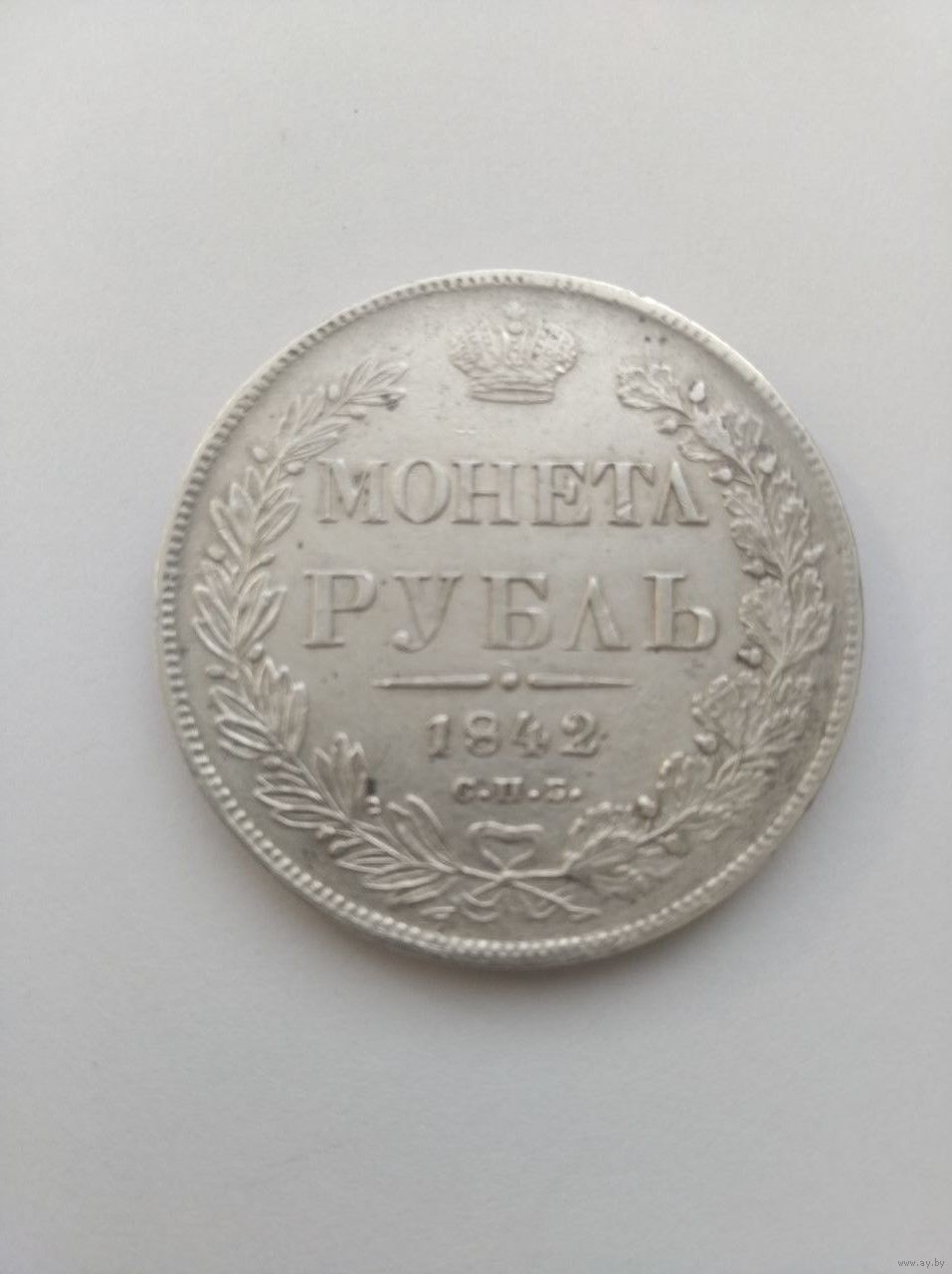 редкий рубль 1842 г. 11 перьев в хвосте,7 венков, нет горизантальной линии в букве А в слове МОНЕТА.