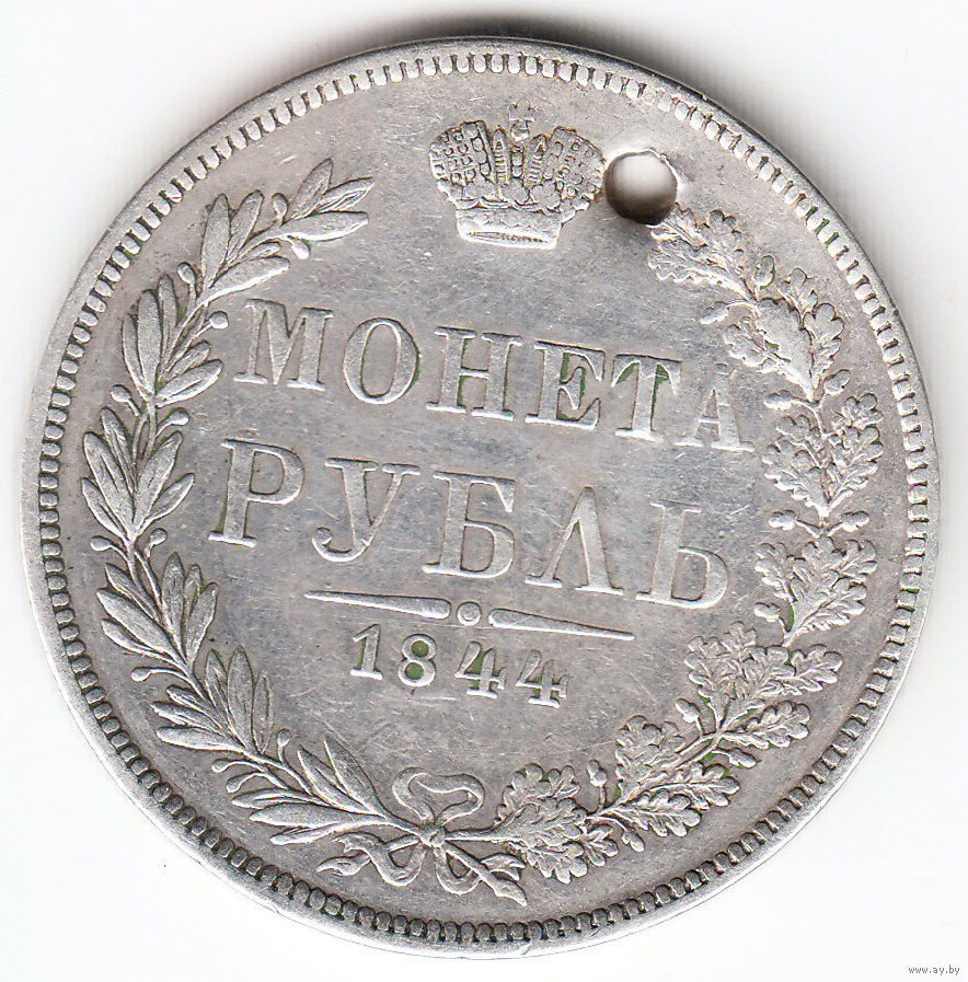 Рубль 1844г MW, дырка