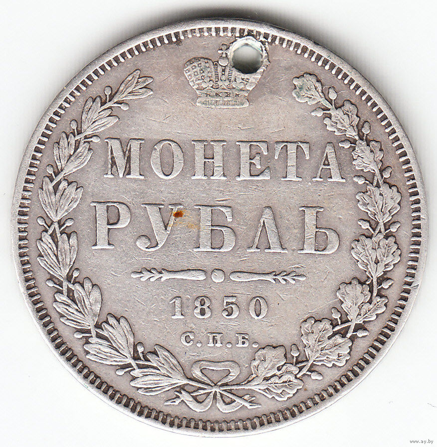 Рубль 1850г в плаще, дырка