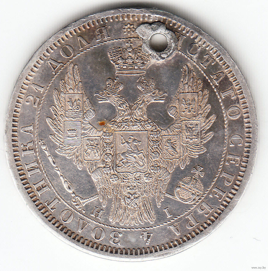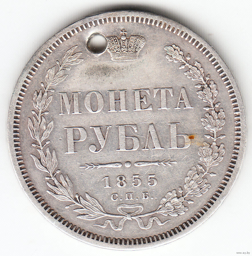 Рубль 1855г, дырка