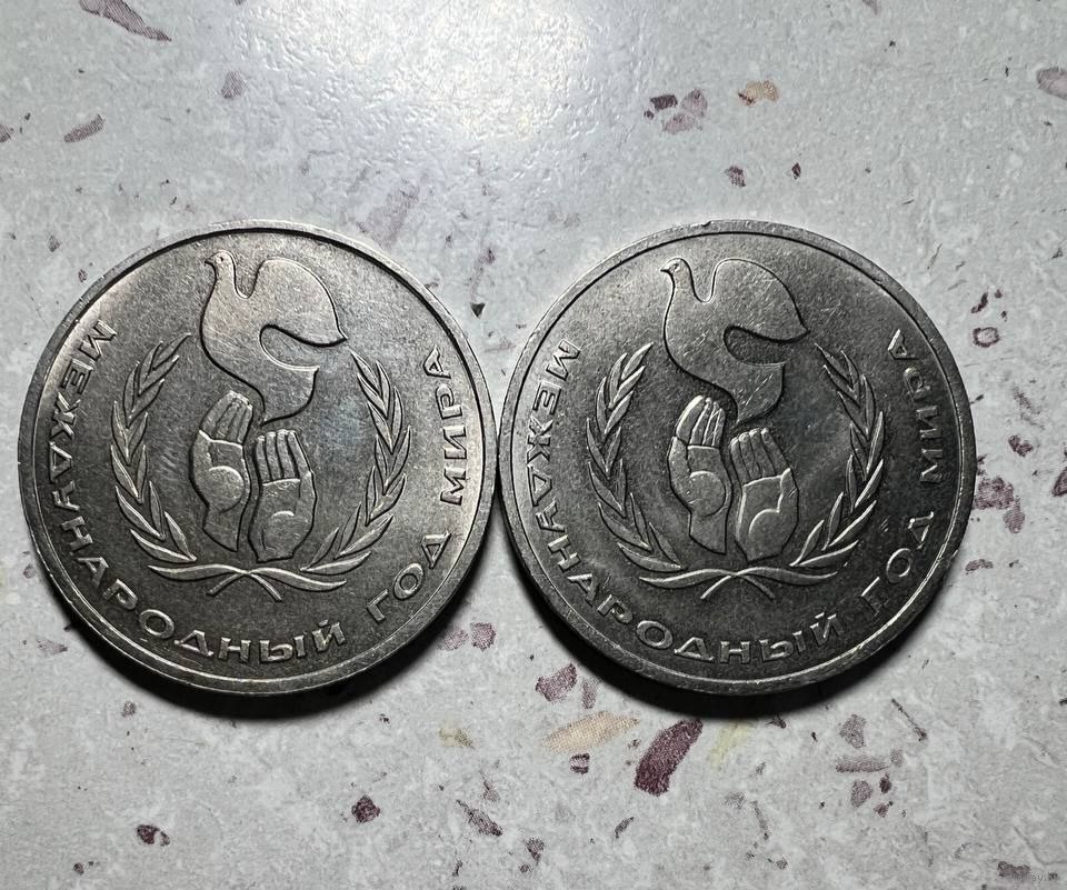 Лот состоит из двух монет 1 рубль СССР 1986 года. Разновидность "Шалаш". Международный года мира.