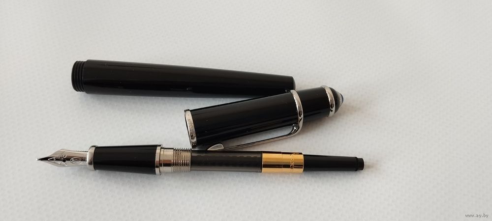 Предлагается перьевая ручка Cartier Diabolo Black & Platinum. Перо золотое 18к 750 проба . Колпачек на резьбе. Картриджно-конвертерная система заправки. Состояние новой, никогда не заправлялась. В комплекте также два подсохших картриджа, бумажки отсутствуют.