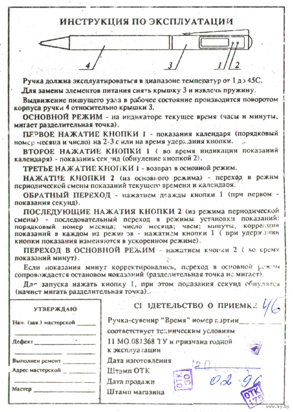 Основное назначение встроенных в ручку электронных часов и календаря - определение точной даты и времени при подписании приказов (даже в стрессовых условиях, отсутствии электроснабжения и связи).