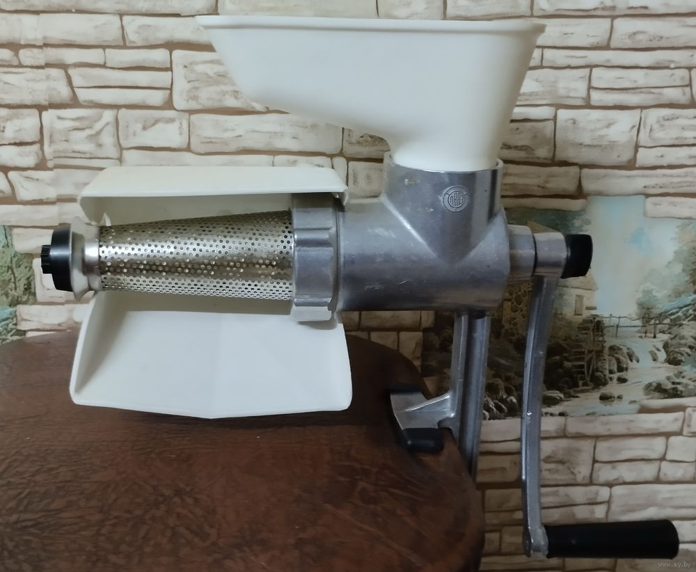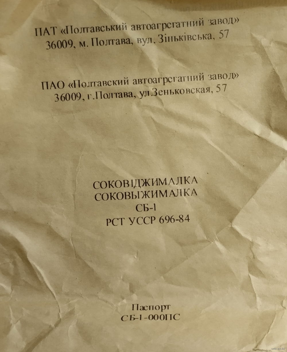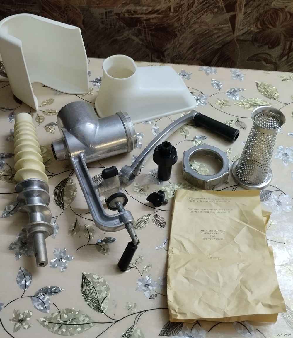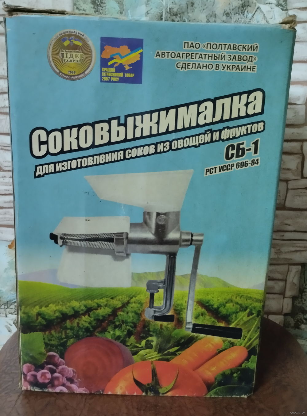 На изображении представлена ручная механическая соковыжималка СБ-1 производства Полтавского автоагрегатного завода.