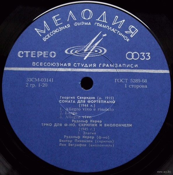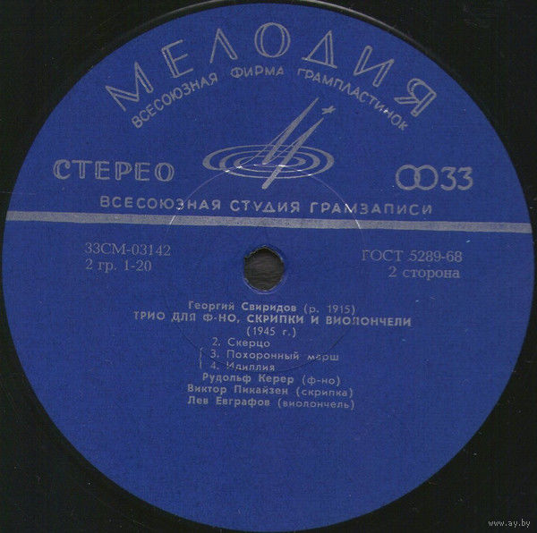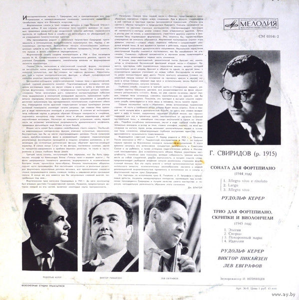 Рудольф Керер, Виктор Пикайзен, Лев Евграфов – /Г. Свиридов/ -Соната Для Фортепиано / Трио Для Фортепиано, Скрипки И Виолончели - 1972,Vinyl,LP,made in USSR.