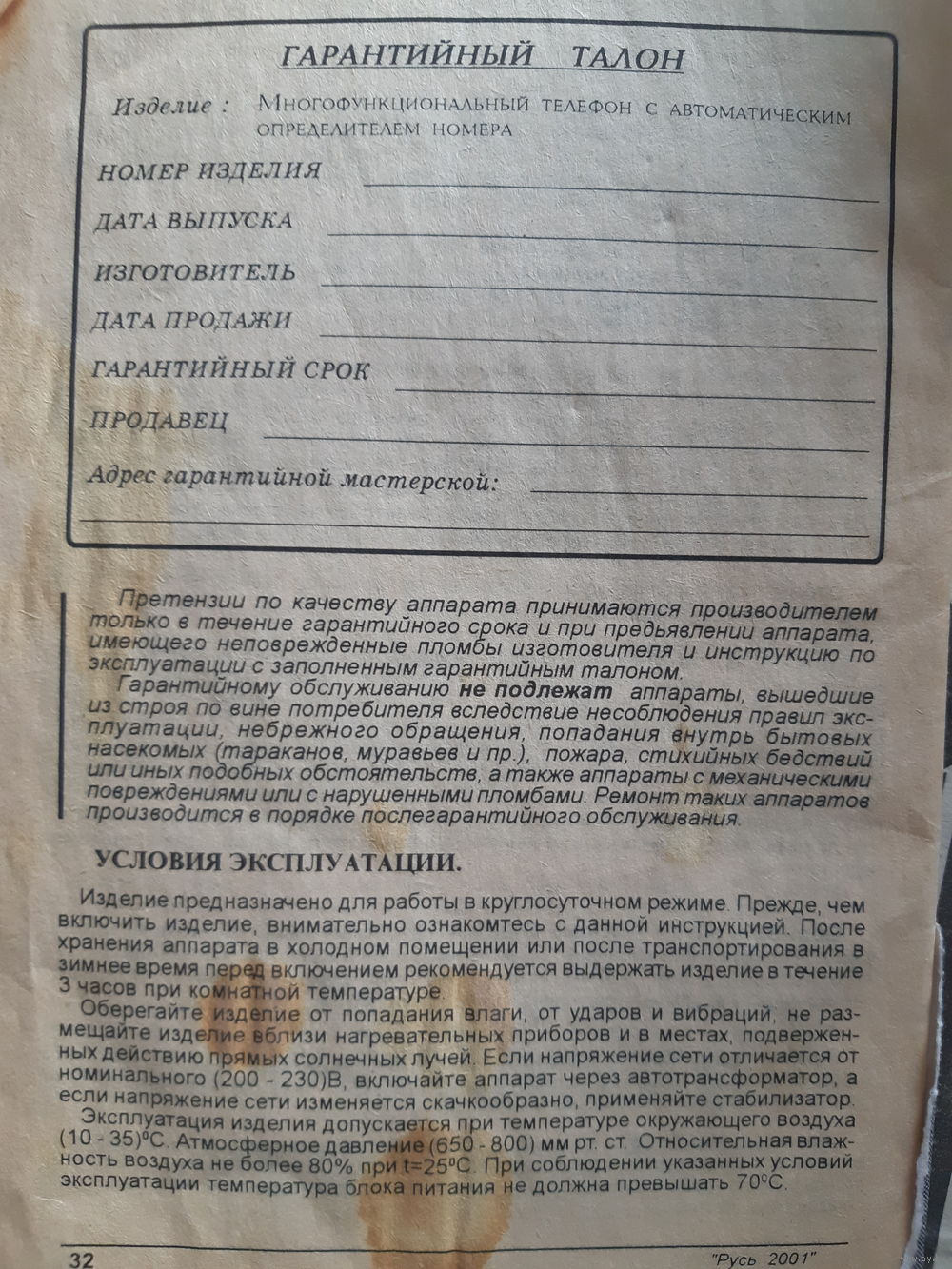Руководство по эксплуатации телефон РУСЬ 2001(1)