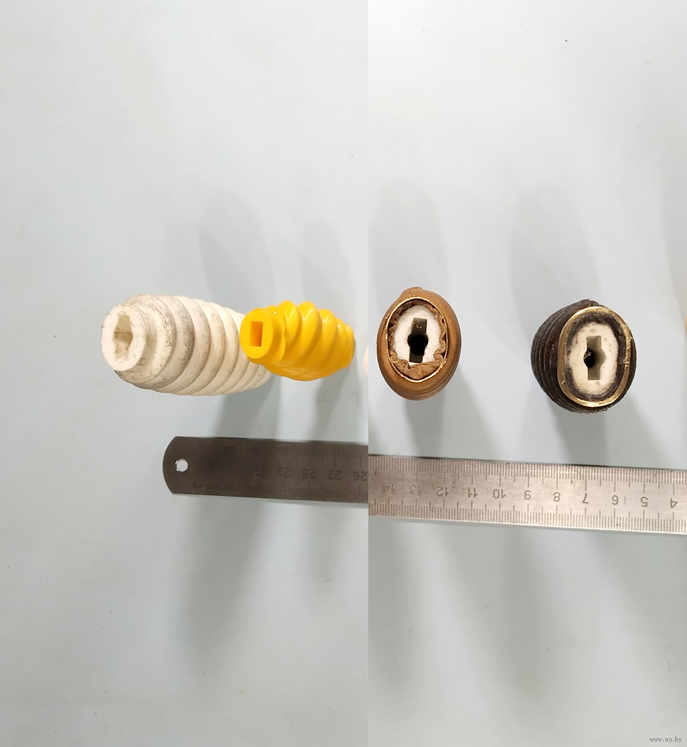 Фото 5-7 - то, что рукоятки представляли собой до обработки - размеры овала: белая 20 и 13,5 мм, диаметр верхних кругов (цилиндров) белая 12 и 5 мм.