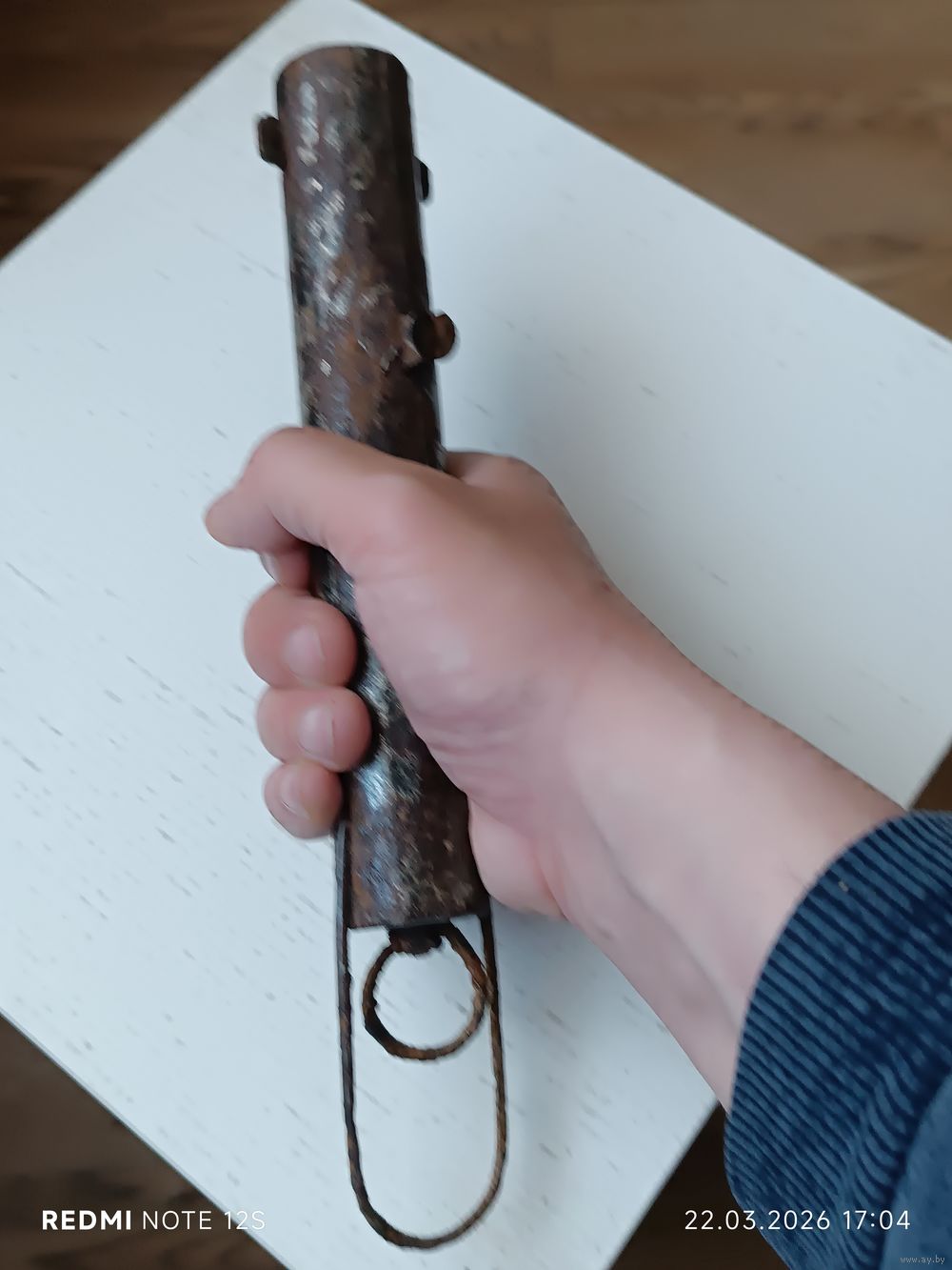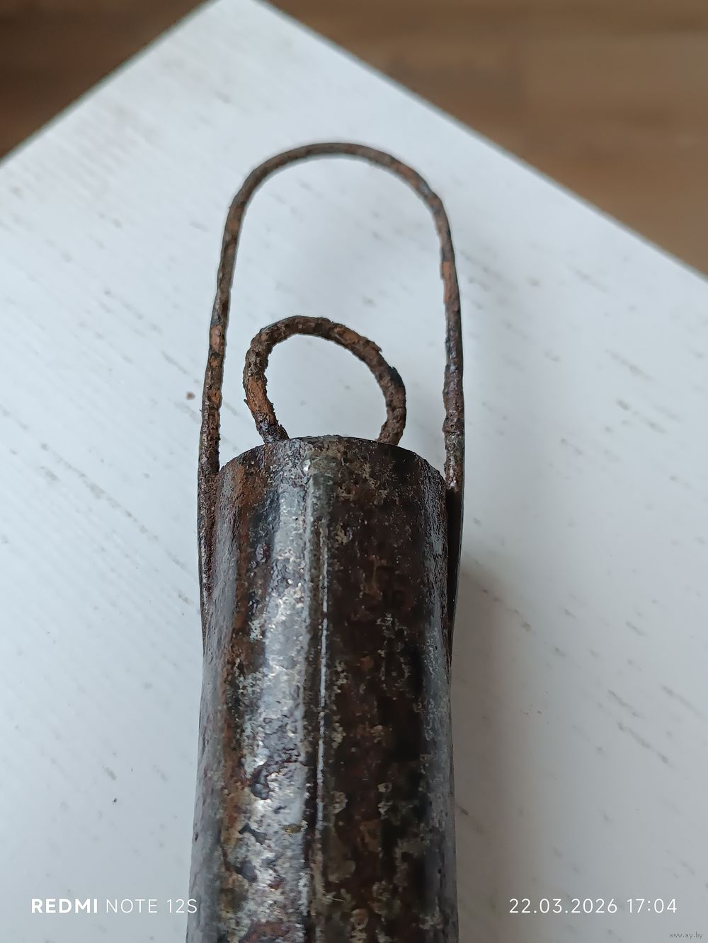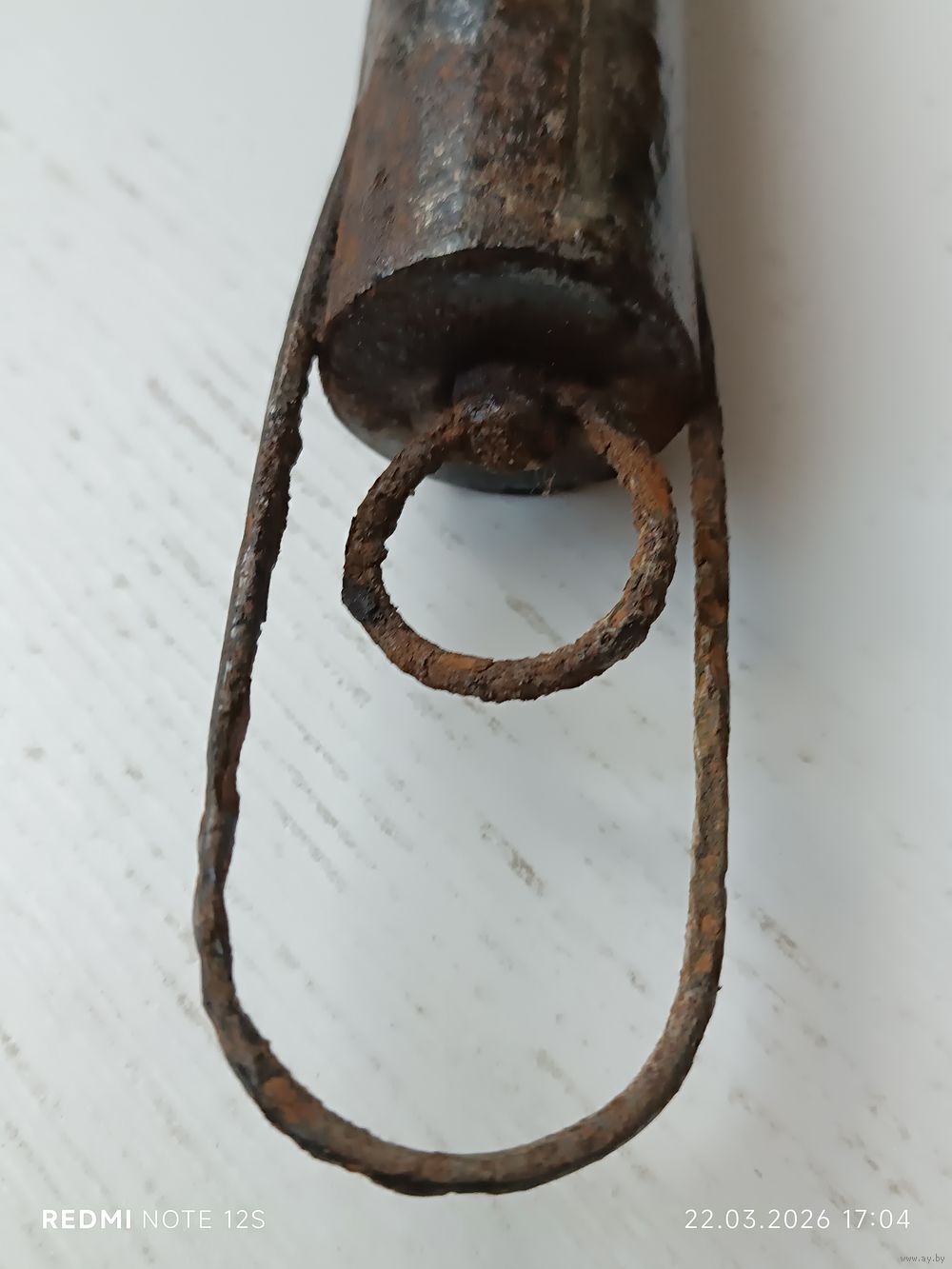 Комплектность: Сохранилось оригинальное проволочное кольцо для переноски (редкая деталь для таких находок). Геометрия «ушек» и корпуса не нарушена.