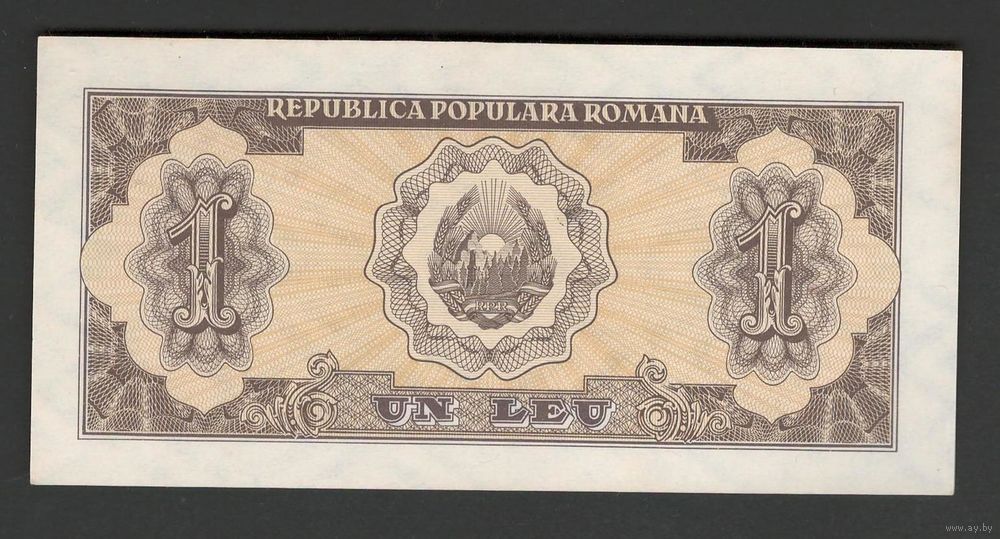 Румыния 1 лей 1952 года. Тип Р-81b. Голубой номер. Состояние UNC!