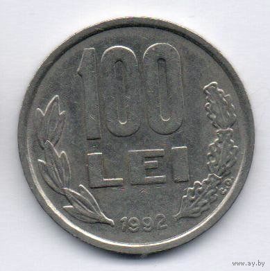 РУМЫНИЯ. 100 ЛЕЕВ 1992. Тип с толстыми цифрами номинала и закругленными девятками. НЕЧАСТАЯ