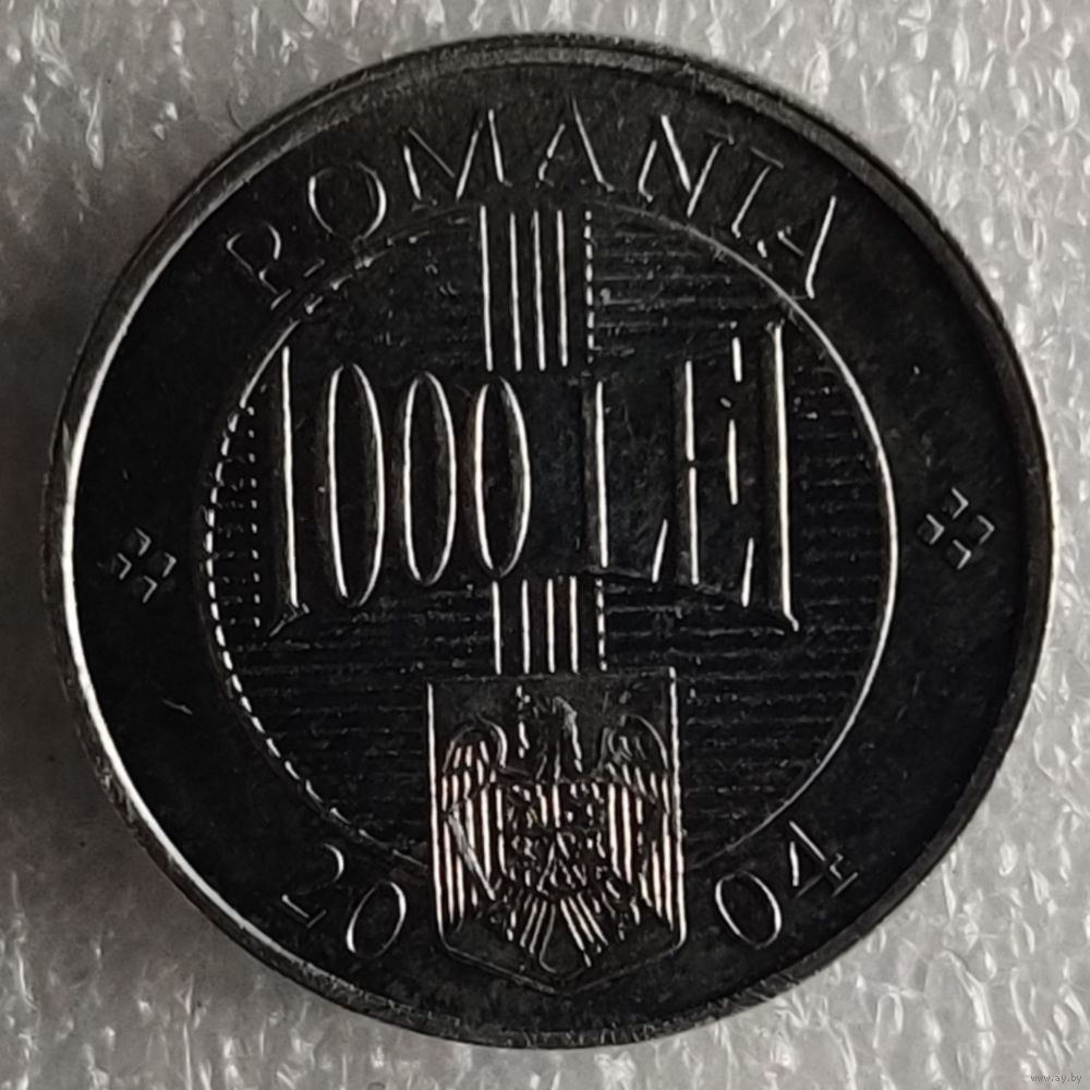 Номер KM # 153 Страна Румыния Период Республика Румыния (1990 - 2005) Валюта Румынский лей Вид чекана Регулярный чекан Номинал 1000 леев Год 2000 - 2006 Гурт Рубчатый с гладкими участками Форма Круг Отношение авс/рев Монетное (180°) Материал Алюминий Вес (g) 2 Диаметр (mm) 22,2 Толщина (mm) 2,1