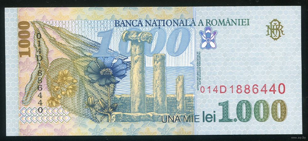 Румыния 1000 лей 1998 г. Р106(2). UNC