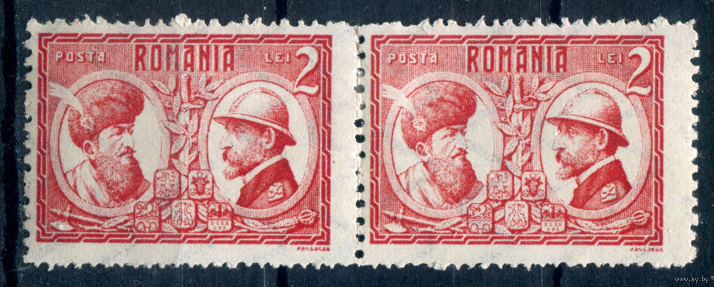 Румыния - 1922г. - коронация Фердинанда - 2 марки - сцепка - MH. #4-W2-122-KS-2