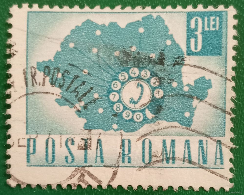 Румыния 1967. Почта и транспорт. Дисковый телефон