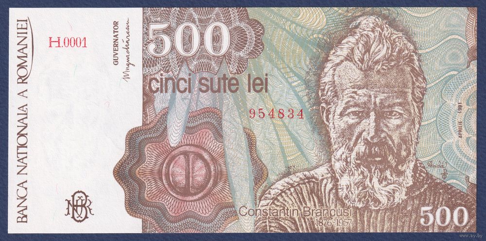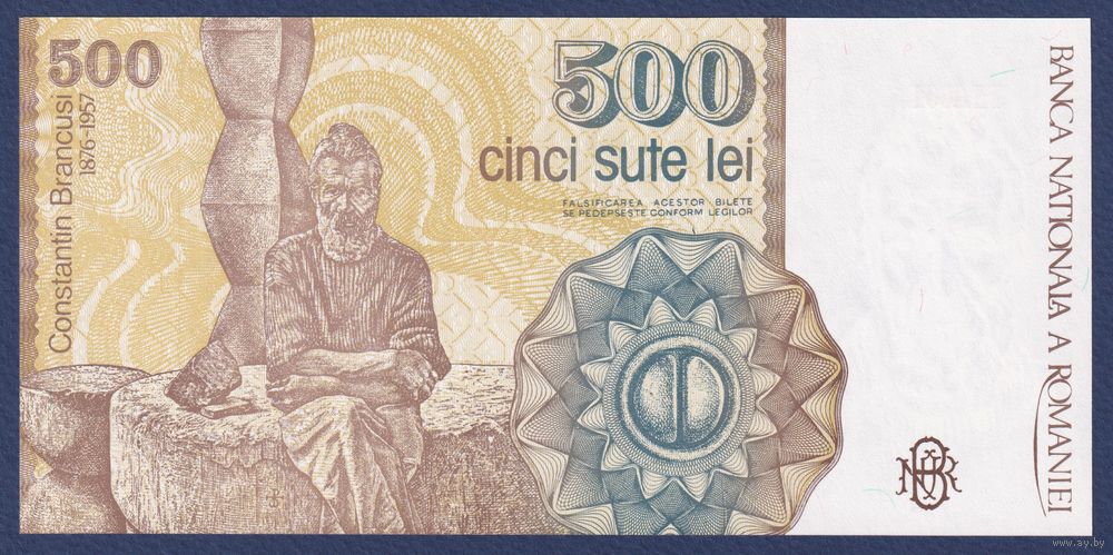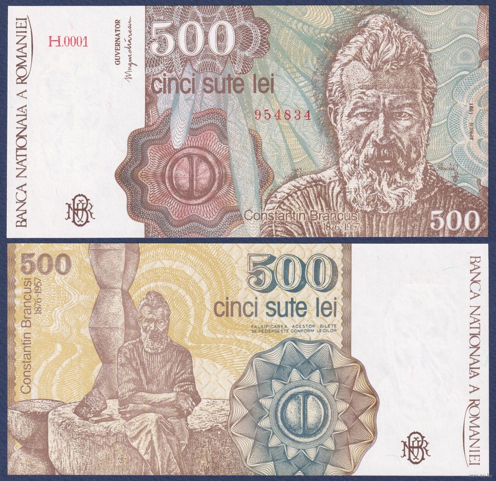 Румыния, 500 лей 1991 г., P-98b (скульптор Константин Бранкузи), UNC