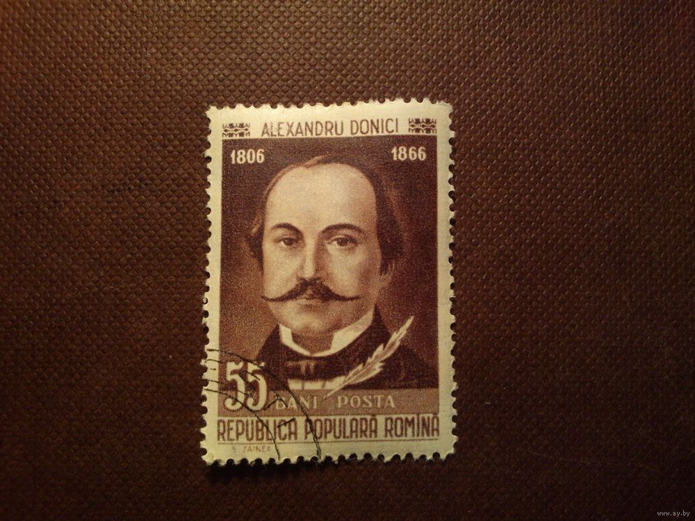 Румыния1960 г .Румынские писатели.Александру Донич (1806-1866)..Гашеная с клеем.Наклейка.