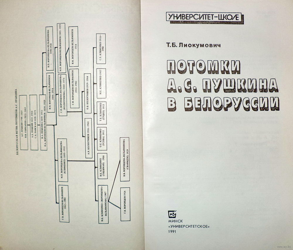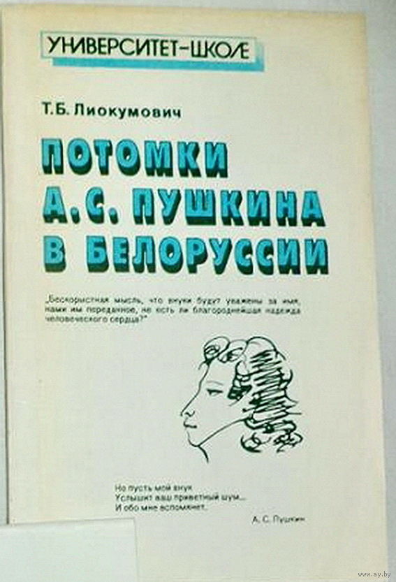 2.-Т.Б.Лиокумович"Потомки А.С.Пушкина в Белоруссии", Минск, 1992, Университетское, с.95.