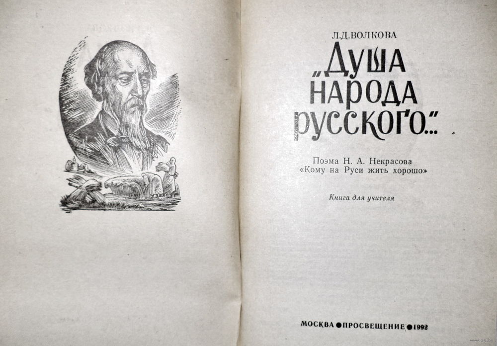1.-Л.Д.Волкова "Душа народа русского" (поэма Некрасова "Кому на Руси жить хорошо"), Москва,1992г,Просвещение,с.110. Книга для учителя!