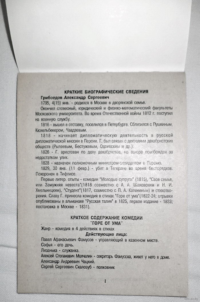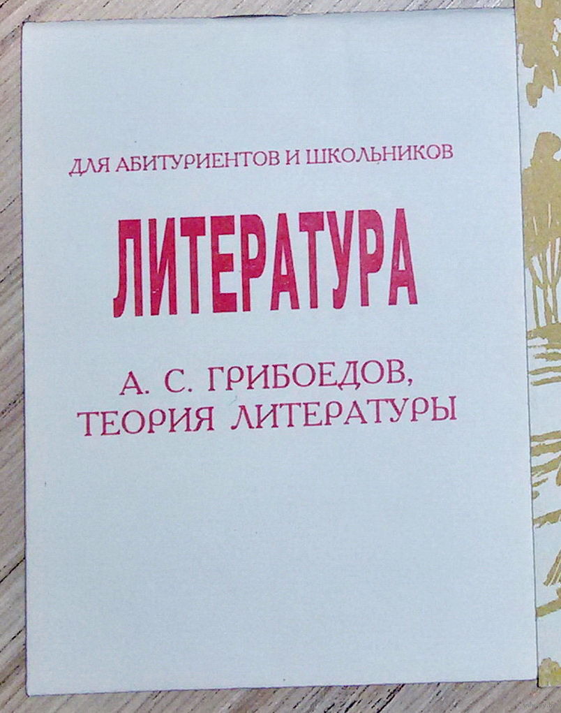 3.-"ЛИТЕРАТУРА" для абитуриентов и школьников, 1996г, с.45-А.С.Грибоедов. Теория литературы (биография, краткое содержание комедии по главам, литерат. жанры, направления и др).