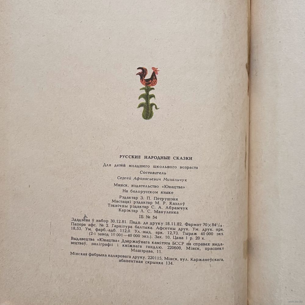 Мастак B. тарасаўУ кнігу ўваходзяць рускія народныя казкі ў апрацоўцы A. Афанасьева, Л. Талстога, А. Талстога, М. Булатава, А. Нячаева, K. Ушынскага і іншых пісьменнікаў. Тут ёсць чарадзейныя і бытавыя казкі, казкі пра жывёл.